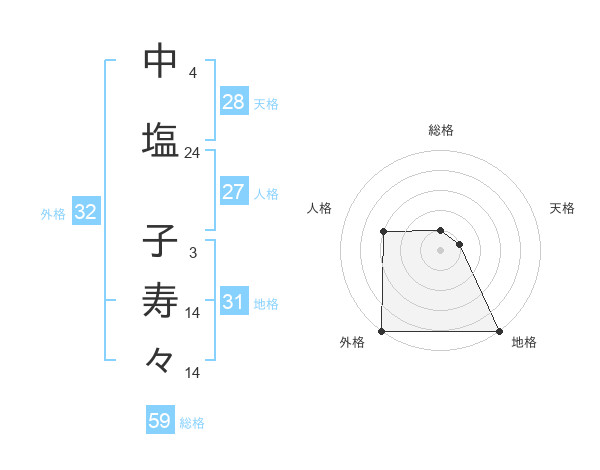 中塩 子寿々さんの総格は59画の1点!