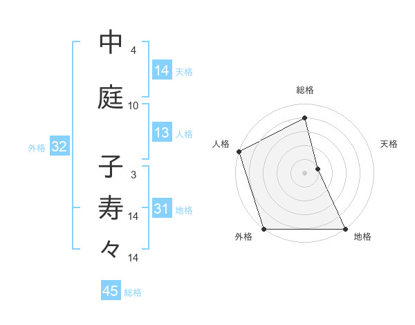 中庭 子寿々さんを姓名の画数から五運を鑑定