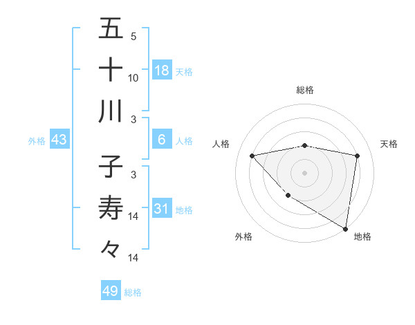 五十川 子寿々さんを姓名の画数から五運を鑑定