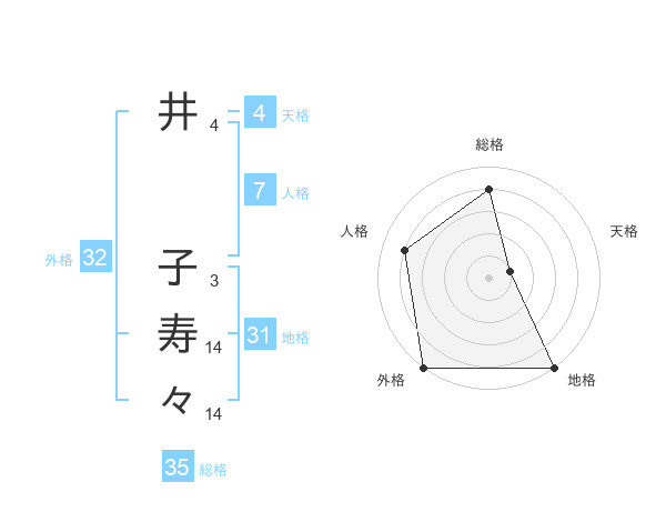 井 子寿々さんの総格は35画の4点!