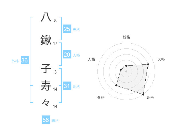 八鍬 子寿々さんを姓名の画数から五運を鑑定