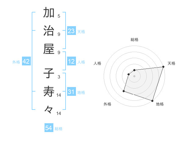 加治屋 子寿々さんの総格は54画の1点!