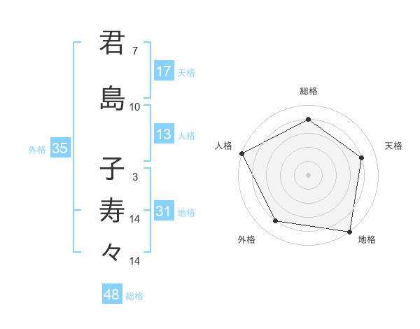 君島 子寿々さんの総格は48画の4点!