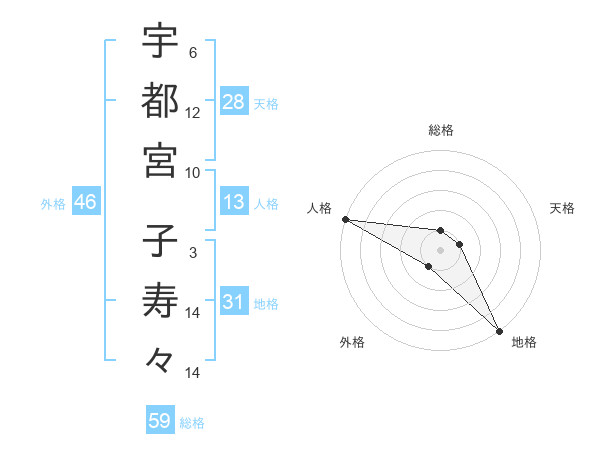 宇都宮 子寿々さんの総格は59画の1点!
