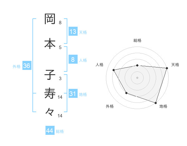 岡本 子寿々さんの天格は13画の5点!