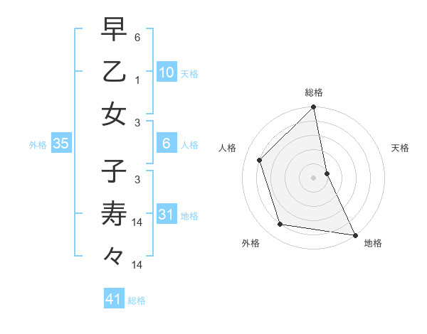 早乙女 子寿々さんを姓名の画数から五運を鑑定