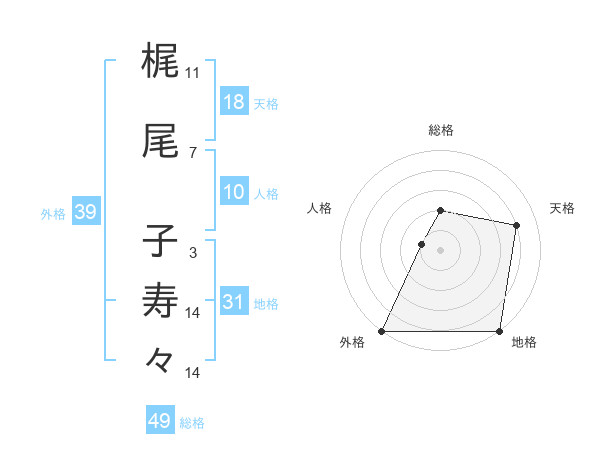 梶尾 子寿々さんを姓名の画数から五運を鑑定