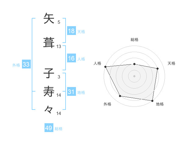 矢葺 子寿々さんを姓名の画数から五運を鑑定