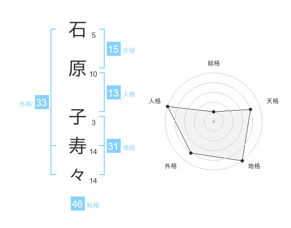 石原 子寿々さんを姓名の画数から五運を鑑定