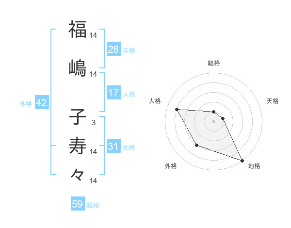 福嶋 子寿々さんを姓名の画数から五運を鑑定