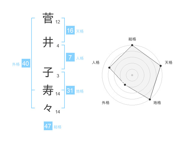 菅井 子寿々さんの総格は47画の5点!