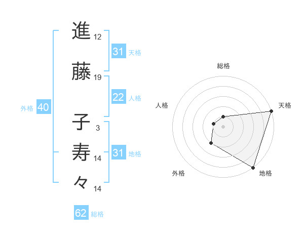 進藤 子寿々さんの地格は31画の5点!