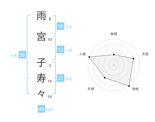 雨宮 子寿々さんを姓名の画数から五運を鑑定