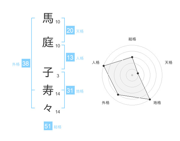 馬庭 子寿々さんを姓名の画数から五運を鑑定