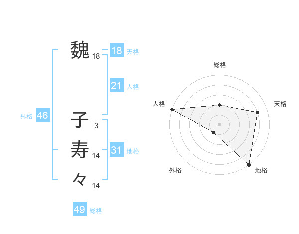 魏 子寿々さんの総格は49画の2点!