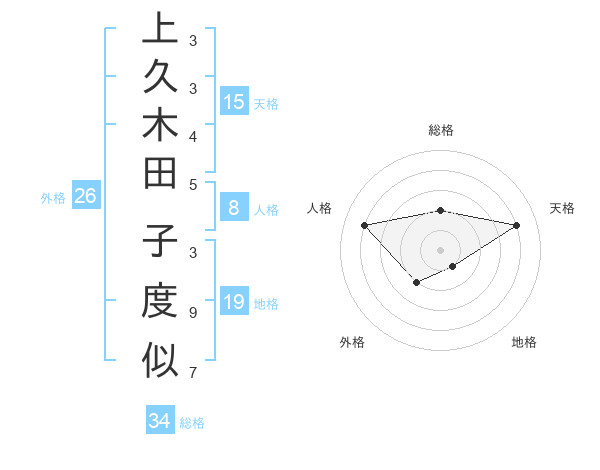 上久木田 子度似さんを姓名の画数から五運を鑑定