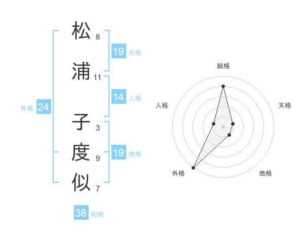 松浦 子度似さんの総格は38画の4点
