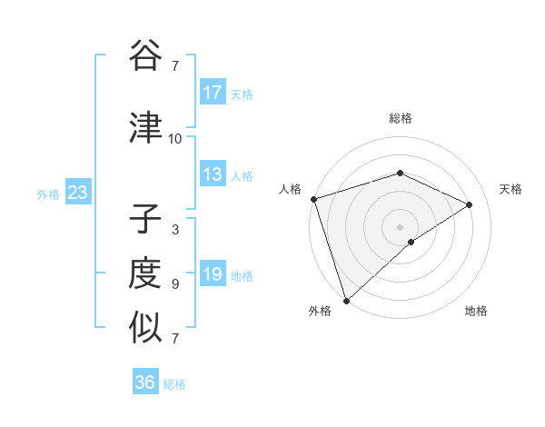 谷津 子度似さんを姓名の画数から五運を鑑定