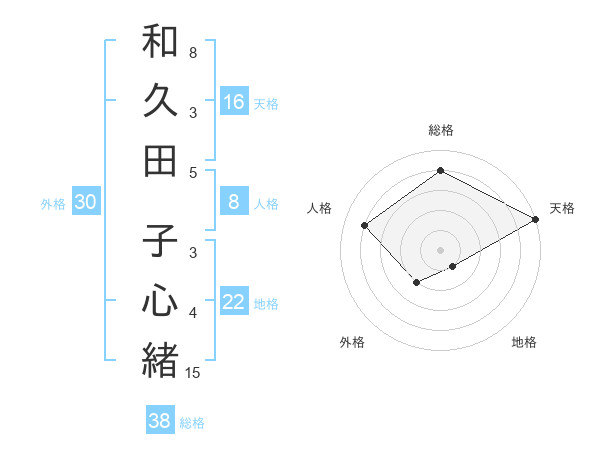 和久田 子心緒さんの総格は38画の4点!