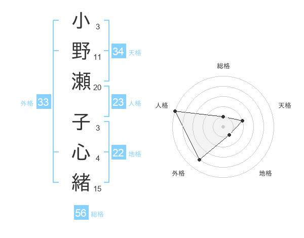 小野瀬 子心緒さんの外格は33画の4点!