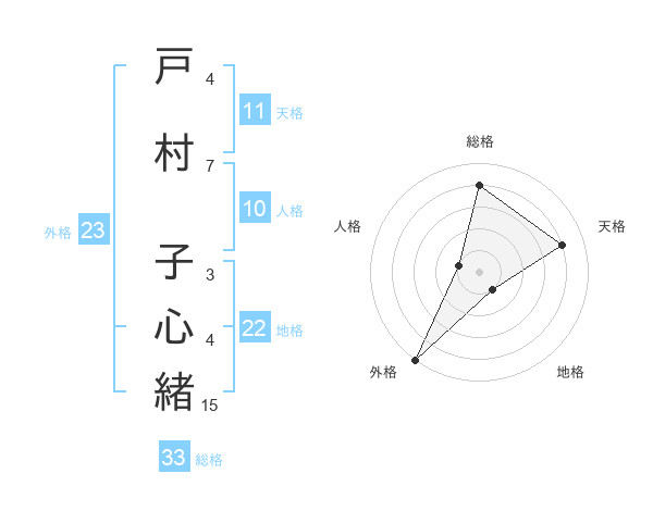 戸村 子心緒さんを姓名の画数から五運を鑑定