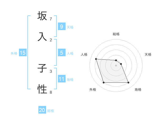 坂入 子性さんの総格は20画の1点!