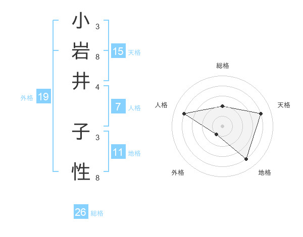 小岩井 子性さんを姓名の画数から五運を鑑定