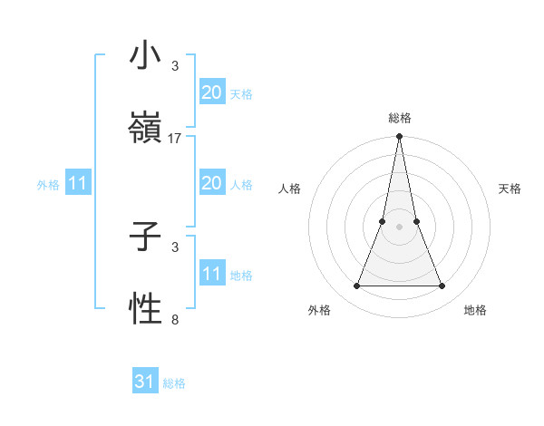 小嶺 子性さんを姓名の画数から五運を鑑定