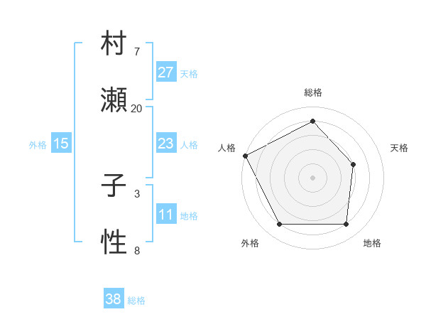 村瀬 子性さんの総格は38画の4点!