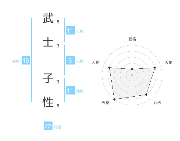 武士 子性さんの総格は22画の1点!
