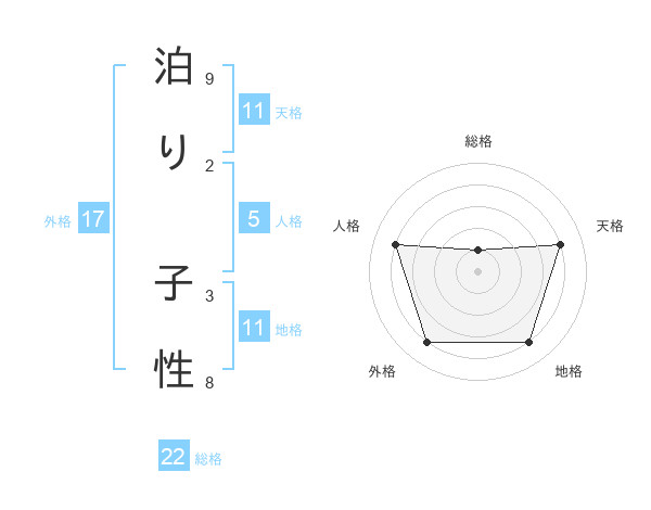 泊り 子性さんの総格は22画の1点!