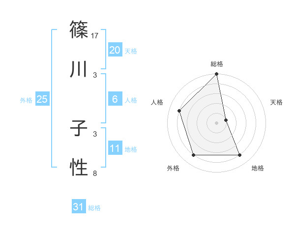 篠川 子性さんの総格は31画の5点!