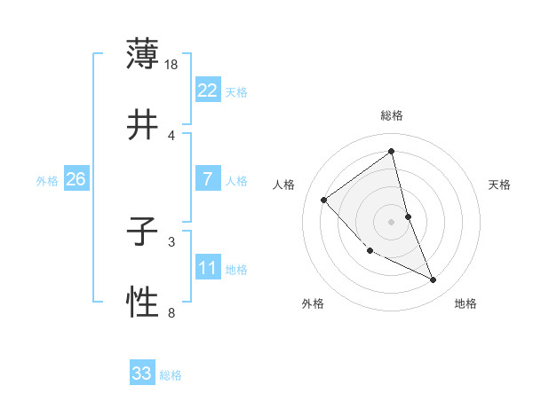 薄井 子性さんの総格は33画の4点!