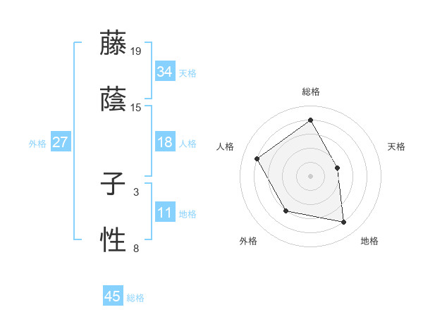藤蔭 子性さんの総格は45画の4点!