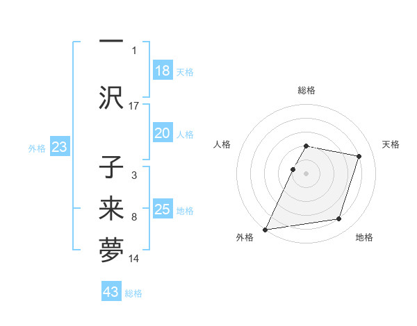 一沢 子来夢さんの天格は18画の4点!