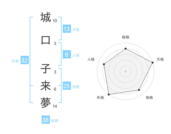 城口 子来夢さんを姓名の画数から五運を鑑定