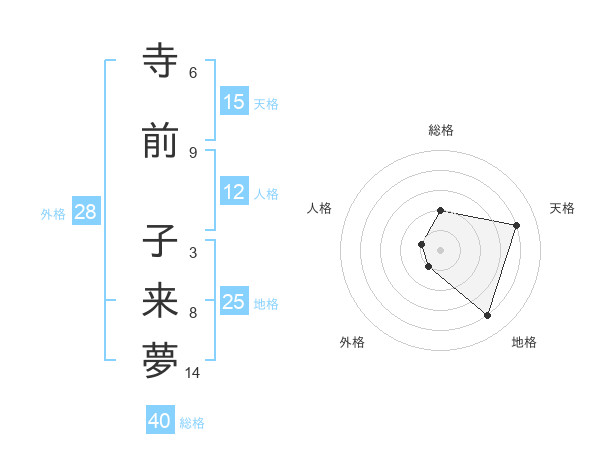 寺前 子来夢さんの天格は15画の4点!