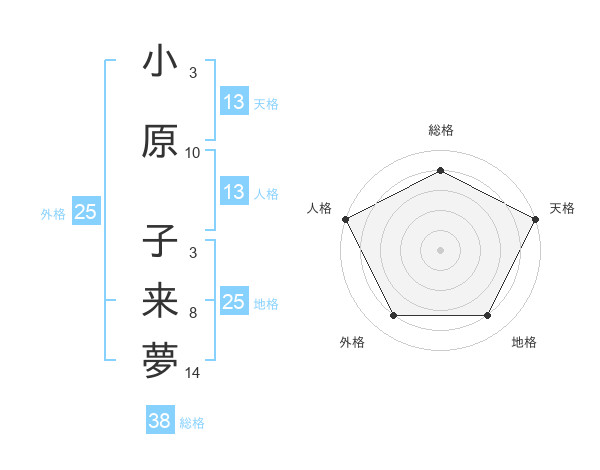 小原 子来夢さんの総格は38画の4点!
