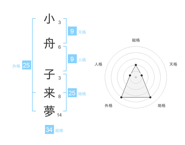 小舟 子来夢さんの外格は25画の4点!