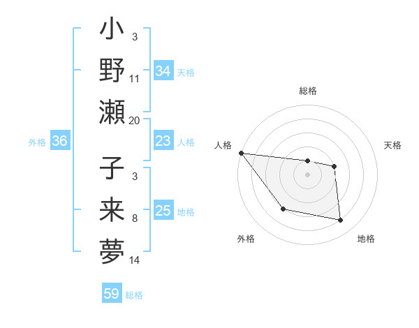 小野瀬 子来夢さんを姓名の画数から五運を鑑定