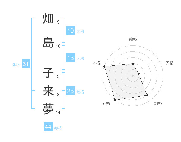畑島 子来夢さんの総格は44画の2点!