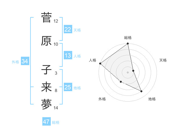 菅原 子来夢さんを姓名の画数から五運を鑑定