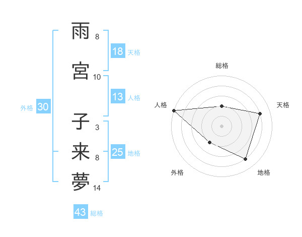 雨宮 子来夢さんを姓名の画数から五運を鑑定