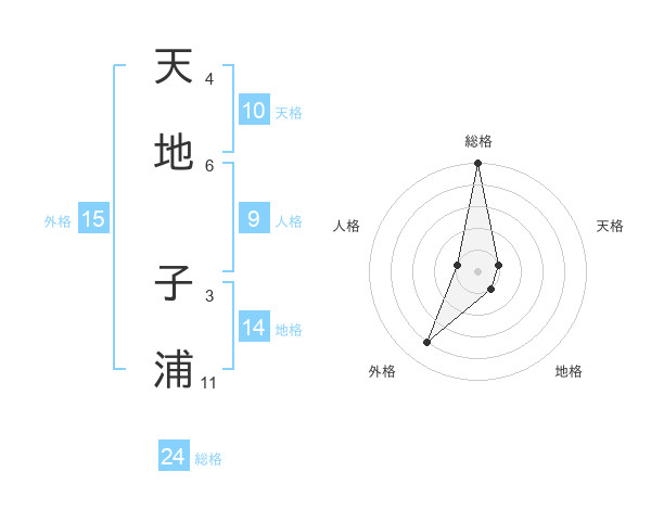 天地 子浦さんの外格は15画の4点!