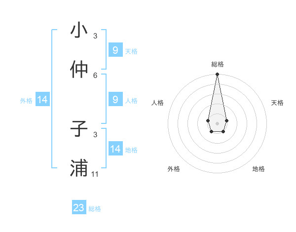 小仲 子浦さんを姓名の画数から五運を鑑定