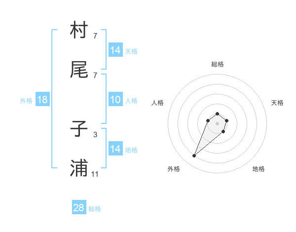 村尾 子浦さんを姓名の画数から五運を鑑定