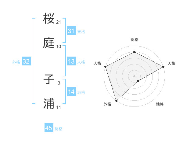 桜庭 子浦さんの外格は32画の5点!