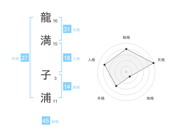 龍満 子浦さんを姓名の画数から五運を鑑定