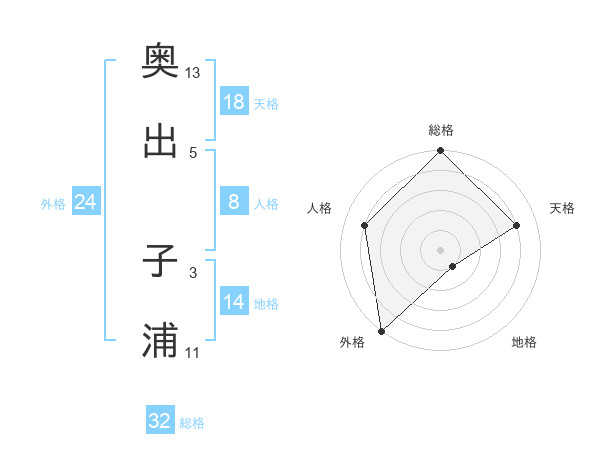 奥出 子浦さんを姓名の画数から五運を鑑定