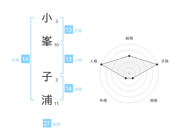 小峯 子浦さんを姓名の画数から五運を鑑定